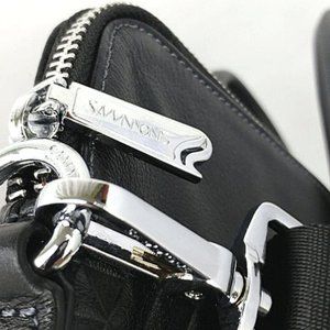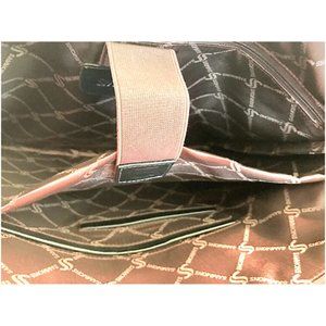 Sammons Medici Slim Black Genuine Leather Laptop Briefcase, in excellent condition. Never used. Soft imported leather. Smooth back front has geometric imprint pattern.For both men or women. Silver tone hardware. Zip top closure, large slip snap pockets on front and back. Inside brown logo lining, 2 sections, padded between for Laptop, iPad, phone, etc.Inside zippered and two slip pockets.Double handle-5" drop. 64" removable/adjustable strap.Approx. Meas: 15" x 12" x2". Stylish & sophisticated.
