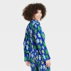 Sammy B X Target Blue Pleated Floral Long Sleeve Top S