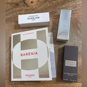 Creed Millisime Inperial and Pure White (Les Royales Collection), Mind Games Checkmate, Tom Ford Soleil Neige, Guerlain Vetiver Fauve and Aqua Allegoria Forte x 3, Hermes, Blvgari Allegra, and Brunello Cucinelli Femme, twelve total, all new.