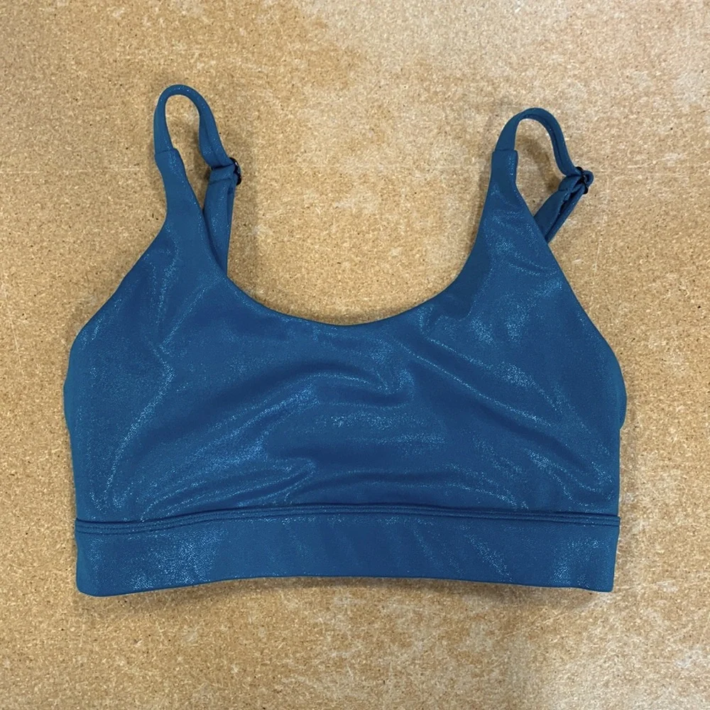 Matte Teal shimmer sports bra. No logo or sizing information. No pads available but has inserts inside. Adjustable straps. FINAL SALE-NO EXCHANGES/RETURNS TO CNC.
