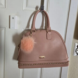 This One of a Kind handbag in blush pink from BCBG Paris would be a great addition to any collection. comes from a non-smoking home with no pets and even includes the cute little pom pom. 0lease ask if you have additional questions. Height of bag is 11 in, length 15 in, depth 5 in.