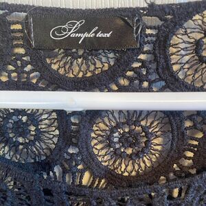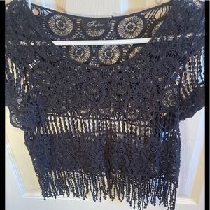 Sample text black crochet and fringe cropped top.  No sz tag .  See measurements
