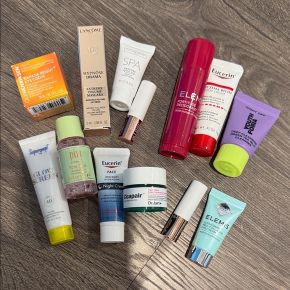 Beauty samples. All brand new never used or tested. Includes Elemis, Tarte cosmetics, Lancôme, Eucerin, etc!