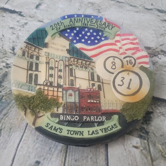 Celebrate a piece of Las Vegas history with the Sams Town Las Vegas Bingo Parlor 20th Anniversary Plate. This commemorative plate, measuring approximately 6 inches, is a nod to the iconic casino theme that has captivated visitors for decades. Its origins are shrouded in mystery, adding an air of intrigue to its already allure. Crafted with the casino enthusiast in mind, this collectible plate is a perfect addition to any memorabilia collection or as a stand-alone piece to adorn your space with a touch of casino charm. Whether you're a seasoned visitor to the vibrant city or a collector of unique casino artifacts, this plate is sure to be a conversation starter.