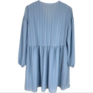 This seasons must have 'Dusty Blue' hue compliments the Jolie dress beautifully. Floaty & relaxed, the short dress features a built in wrap front and side seam pockets to enhance the easy silhouette. A dropped shoulder to the long sleeves are finished with an elasticated cuff and the textured print fabric is recycled polyester and is GRS certified. Oversized loose fit. EXCELLENT CONDITION. NO FLAWS NOTED.