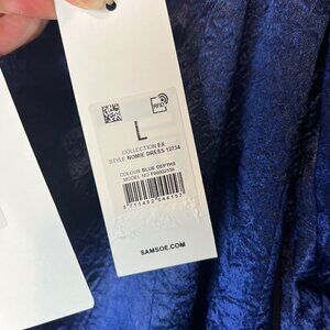 Samsøe Samsøe Nomie Gathered Textured Satin Mini Dress Size Large Navy Blue