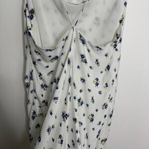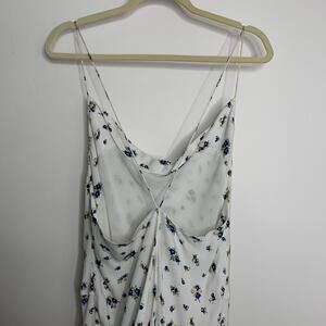 Samsøe Samsøe White Blue Floral Motif Chiffon Apples Slip Midi Dress Large