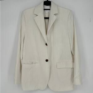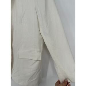 White viscose blend (91% Viscose, 8% Polyester, 1% Elastane). Lining (100% Cotton). Blazer. Long sleeves. Collar. Front button closure. Imported.