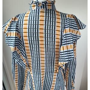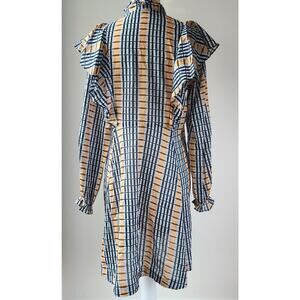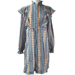 Samsoe Samsoe Martha Short Dress Organic Cotton Plaid Ruffle Long Sleeve Size XS