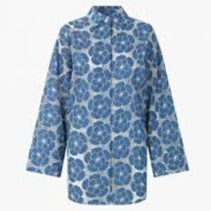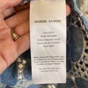 Samsoe oversized Jimea button-down denim embroidered top, sz. XS/S