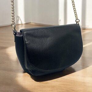 Stylish and functional, this cute Samsonite shoulder bag in black durable & wipeable nylon offers RFID protection for peace of mind. Plenty of functional style ideal for traveling and the gold metal chain strap makes this compact bag perfect fro day to night. The front flap has a concealed magnetic closure. Inside is fully lined in lavender purple, cotton twill fabric, with one large exterior slip pocket and one interior zip pocket. Sleek and sophisticated! Excellent preowned condition with little sign of wear. See photos for more details.