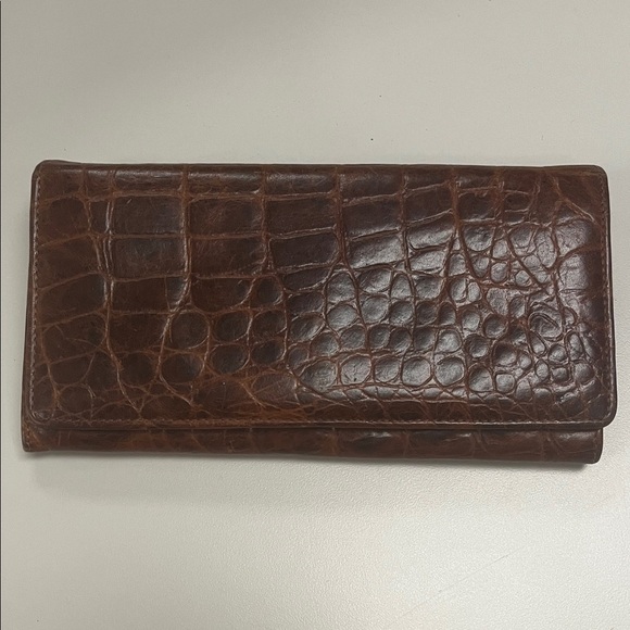 Samsonite Full Grain Stamped Brown Crocodile Wallet & checkbook