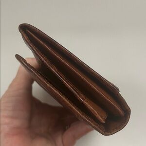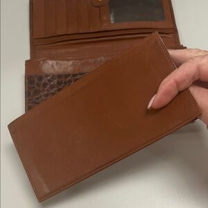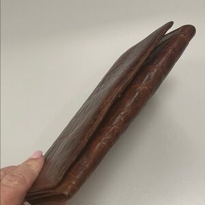 Vintage vibes leather wallet & checkbook cover with textured design. Ideal for daily use. Has been in storage, has a musty smell, needs to be aired out. From a smoke free home. In very good preowned condition.