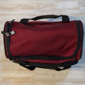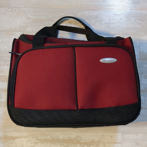 A like-new heavy-duty soft-sided canvas duffle from Samsonite measuring 16" W x 8" D x 11" H -- the perfect weekend bag or addition to your roller. Has strap to fit over rolling suitcase handle. Used maybe once or twice only.