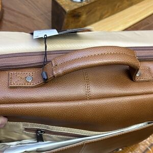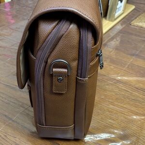 Samsonite cognac flap over Stylish and durable leather messenger bag. Ideal for daily use. Features secure buckle closures and many pockets. NWT.