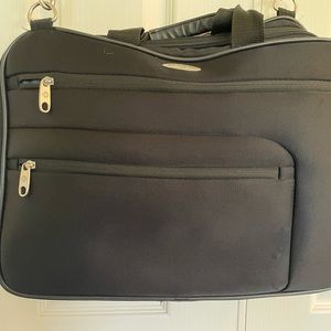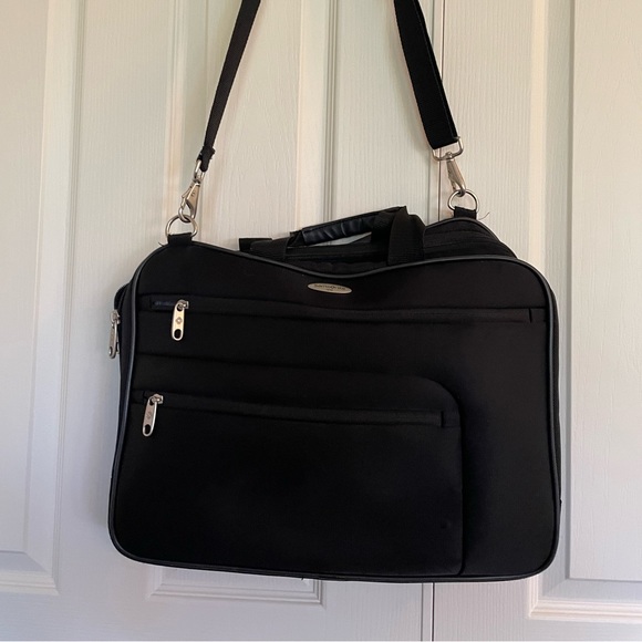 Clean and good condition with noted exceptions: some wear in one inner pocket where pens were clipped and unclipped, tear of outer material at strap clip, does not affect strap or case integrity, purely superficial.