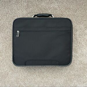 Soft shell laptop case. Dual sided. Very durable. Large laptop case, can probably fit up to 30”. No exact measurements taken. Priced accordingly.
