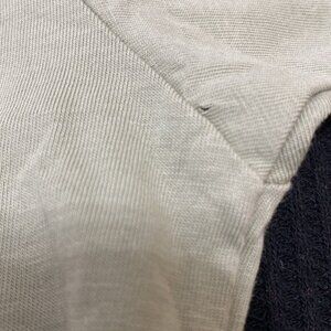 Small hole for the price tag on under the sleeves see pictures please. No visible