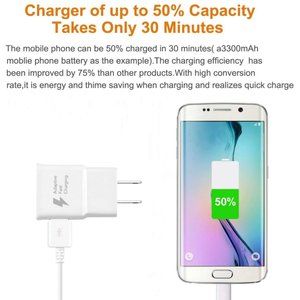 * Super Fast Charging ,The Super Fast charger delivers up to 3 Amp to give your phone power at a much faster rate than your standard 1A or 700mA charger, enables your battery from zero to 50% in just 30 minutes, 75% faster than standard chargers.
