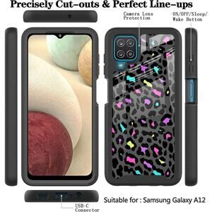 Samsung Galaxy A12 Hard Case Case Colorful Leopard Cheetah Design Shockproof