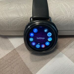 Samsung Gear Sport Smart / Health Watch, fully functional, Black Silicone Band. All Smart Watch and Health apps downloaded. Ready to be factory rest and then connected to your personal phone via Samsung Wearable App. Water resistant 50M.316L Stainless Steel Case.Model SM-R600. S/N RA5JAOFBBCV.