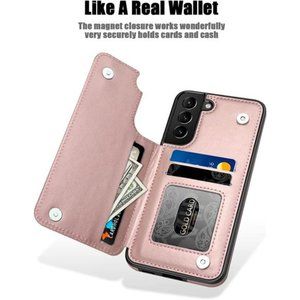 🧿MULTI FUNCTION: This Samsung Galaxy S22 wallet case have 2 cards slots and 1 side cash pocket for easy carry and keep organized.It can be transformed into a kickstand for hands-free when watch movie,video or FaceTime.
