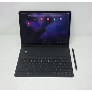 Tablet is in good working condition with minor wear. Screen is clean, S Pen and keyboard folio are fully functional. Locked to T-Mobile — only guaranteed to work via WiFi. No charger or box included.