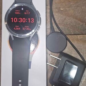 Samsung Galaxy Watch 46 mm featuring a sleek black band. Perfect for fitness and daily use. Charger , watch box, paperwork and extra Supcase band / cover included