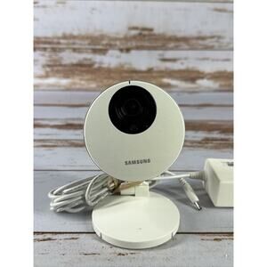 This Samsung SmartCam charger camera is a must-have for your home surveillance needs. With its sleek white design, it will blend perfectly into any room. This camera is specifically designed for those who value security and want to keep an eye on their home day and night. It is perfect for monitoring your home's interior and exterior to ensure that everything is safe and secure. The camera is easy to install and comes with a charger, making it easy to use straight out of the box. Whether you're looking to keep an eye on your home or office, this Samsung SmartCam charger camera is the perfect choice.
