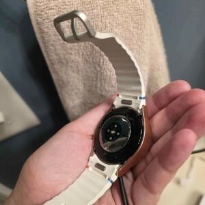 Elegant Samsung smartwatch with a sleek white band and rose gold frame. Ideal for fitness tracking and notifications. Samsung 7 40 MM. Have an extra watch, screen protectors, and extra cases for it as well. Only had 3 months.