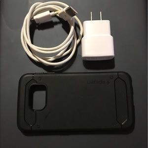 Runs perfectly. Comes with charger and wireless charging pad. Has a sleek black case. The phone is under tmobile