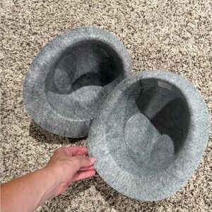 Stylish gray hats with Oktoberfest theme. Features Samuel Adams branding and decorative feathers.
