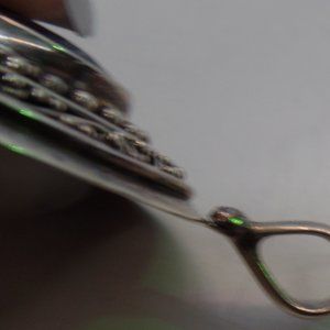 Samuel B Stamped 9.25 BJC Sterling Silver Pendant W Caviar Beading Blue Stone Large Bale. This is a very pretty pendant. It has a large bale so you can put it on a larger chain. And the stone is a blue color and again I do not know the name of the stone. This item is pre-owned and there are no other issues. A fun charm to wear. It reminds me of a high end designer. It has the neatest caviar accents. No issues, gently loved, lots of life left. Please view the pictures carefully for details, colors, measurements, brand and condition. Sometimes I use flash to capture details as well. This will come carefully packaged for shipping. Comes from a smoke free, animal free environment. Please check out our other items. We specialize in Beautiful Jewelry, Purses, Shoes & Home Decor. 400 + Listings.