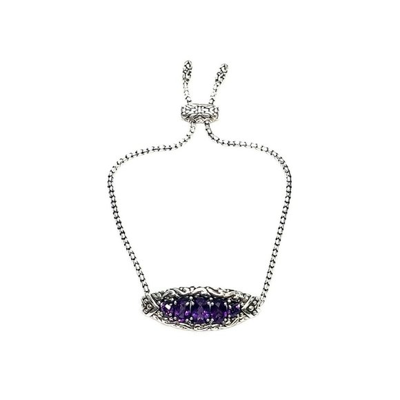 Samuel B Sterling Silver Amethyst Adjustable Slide Bracelet