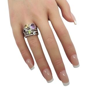 Samuel B Sterling Silver Multi-Stone Ring Wide Band Size 6 # 20232