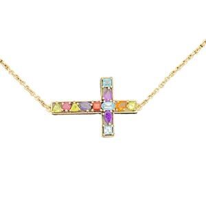 Samuel B. Sterling Silver Sideways Cross Necklace Multi Gemstone 925 Benham 18”