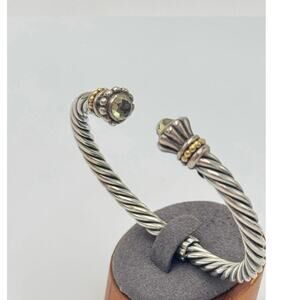 Samuel Benham SB Sterling Silver 14k Gold Citrine Hinged Cable Cuff Bracelet