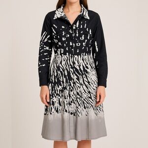 Samuel Dong Black And White Abstract Midi Button Down Dress