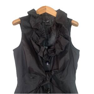 Samuel Dong Black Bubble Hem Sleeveless Mini Dress W/Ruffle, Tie, Pockets NEW S