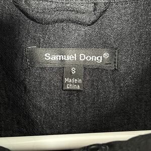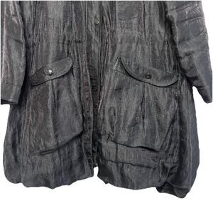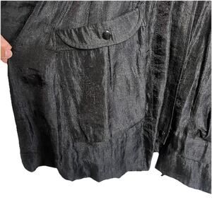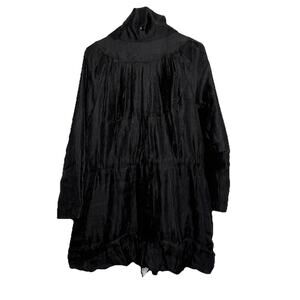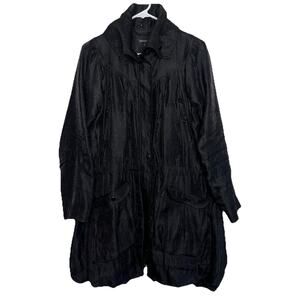 Samuel Dong Black Bubble Satin Jacket Coat Small Zip Front Lagenlook Cocktail
