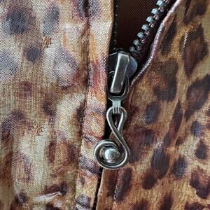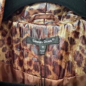 This Samuel Dong trenchcoat features an animal print outer shell made of acrylic material. The coat is accented with a zipper closure and a belted waist. It is suitable for various occasions such as parties, casual outings, business meetings, and formal events. The coat is a size medium and has regular fit. It should be dry cleaned only for proper care. Great high collar and wider sleeves for a designer look!