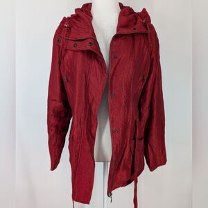 Designer, Quiet Luxury, IYKYK, Art to Wear, Wearable Art, Artsy, Avant Garde, Fall, Winter, Spring, Deep Red, Windbreaker, Jacket, Warm, Stylish, Cute, Feminine, Classy, Classic