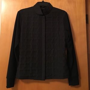 Black fitted jacket with lightly quilted front and polyester back. In excellent condition. Runs small