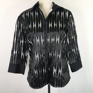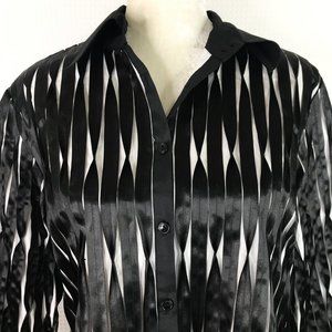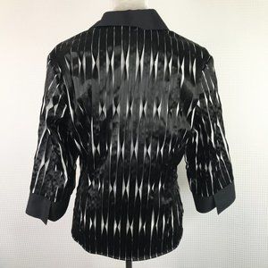 Samuel Dong Jacket - Black White Ribbon Textured, Button Down, Art To Wear, Sleeves can be cuffed, Collar