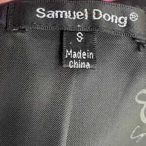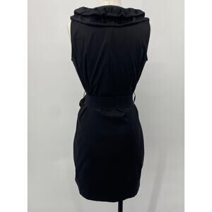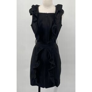 Samuel Dong Mini Dress Front Zipper Moldable Ruffled Belted Taffeta Black Small
