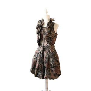 Samuel Dong Pink Floral Brocade Sleeveless Ruffled Dress With Belt SZ S Bubble