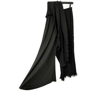 Samuel Dong Pleated Wide Leg Palazzo Pants Black Sheer Lined Evening Fun Size S