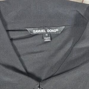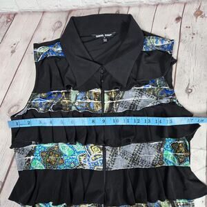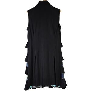 Samuel Dong Tier Ruffle Front Sleeveless Multi Color Pattern Black Tunic Dress M