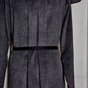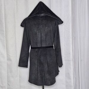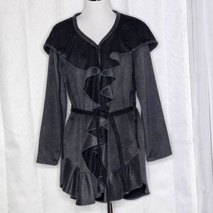 Samuel Dong Two Tone Gray Ruffle Button Front Belted Hooded Sweater Jacket Coat