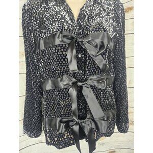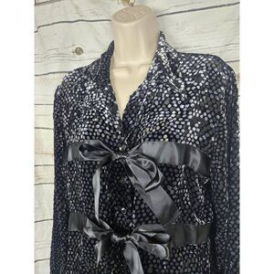 Samuel Dong Velvet Burnout Tie Front Top Womens Large Dot Print Whimsigoth Black
